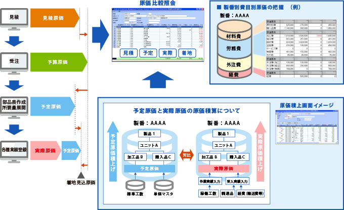 また、予定原価、実際原価だけでなく着地見込原価の確認も可能なため、問題に対する未然処置とコストダウンに向けた取り組みが可能となります。