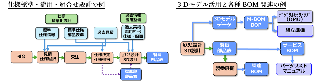 | 組合せ設計に向けた設計の標準化 | ・製品を細分化した構成の部品表機軸で設計情報を蓄積 |