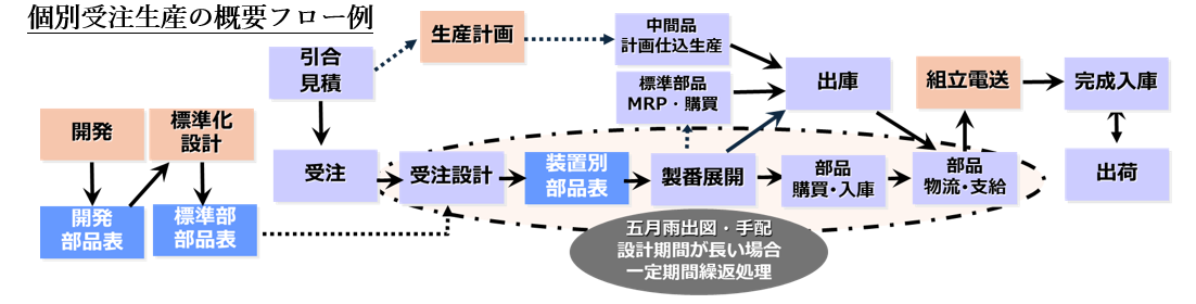 | DTO/ETOに適した基幹業務システムの構築 | ・個別受注生産形態特有の必要な処理機能があるため、自社の生産形態に必要な機能を持つERPの選択、システム開発が必要 |