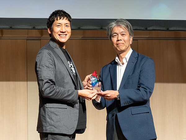 授賞式では、当社取締役執行役員 法人分野担当の田辺が登壇し、表彰盾の授与および受賞スピーチを行いました。